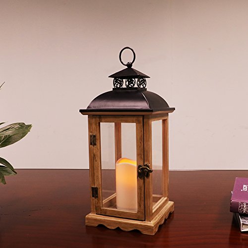 -. Binding : Kitchen -. Brand : Puleo International -. Color : Brown -. EAN : 0804606663863 -. Feature : Lantern Dimensions : 7 x 7 x 14.5 / Lantern weight : 7 lbs / 3 x 4.5 LED candle included, batteries not included / Candle has two timer settings and will automatically repeat daily once set / Indoor Use Only -. IsAutographed : 0 -. Label : Puleo International -. Manufacturer : Puleo International -. ProductGroup : Home -. ProductTypeName : HOME -. Publisher : Puleo International -. Studio : Puleo International -. Title : Puleo International 14 1/2 inch tall Wood and Metal Lantern with LED Candle -. UPC : 804606663863