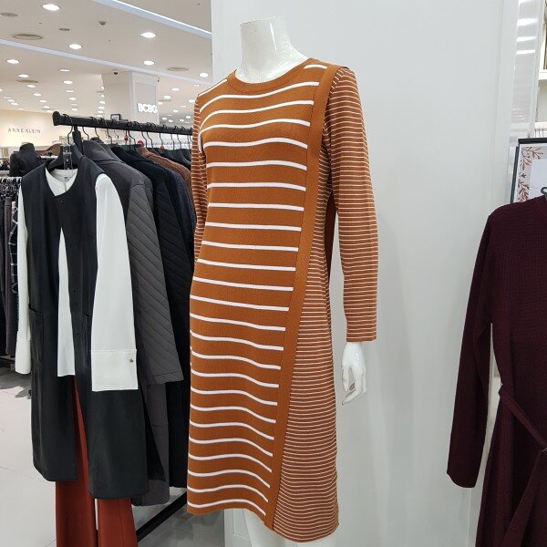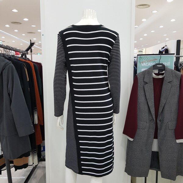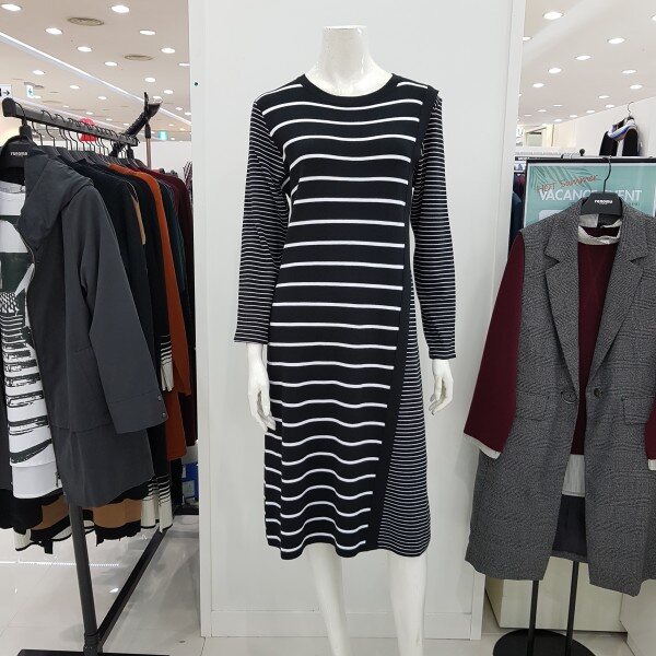 언발란스 디자인에 스트라이프 패턴이 들어가 멋스럽게 단품으로 입기 좋은 롱 기장의 원피스 입니다 화이트 스트라이프로 캐주얼하게 입기 좋은 스타일로 넉넉한 핏에 신축성 좋은 원사로 고급스럽게 내추럴 룩으로 입기 좋습니다
