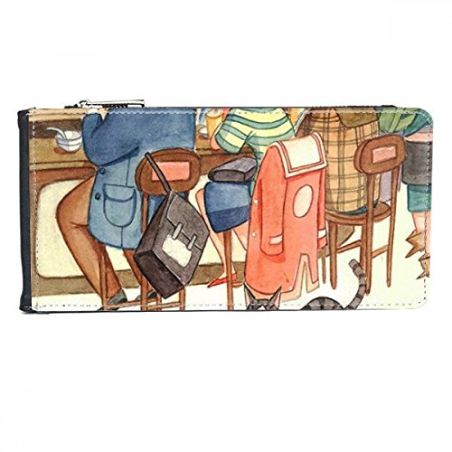 (DIYthinker)/Accessories/Wallets, Money Key Organizers/DIRECT FROM USA/Miaoji Painting Cat Restaurant Catch Rat Multi-Card Faux Leather Rectangle Wallet Card Purse Gift