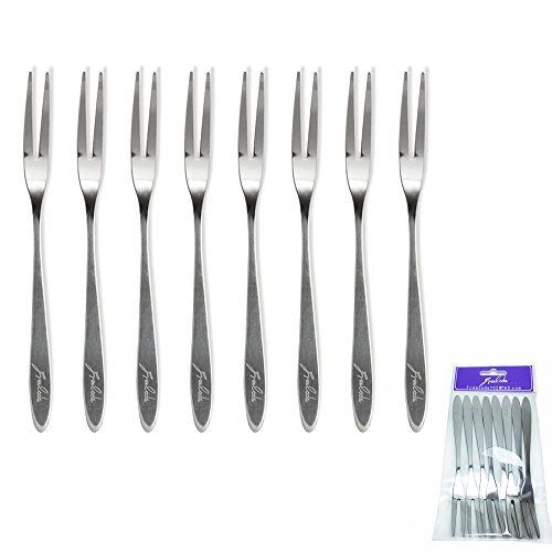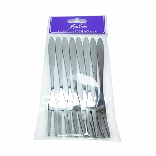 FreeCode® 5.12-inch Set of 4 High Quality Stainless Steel Fruit/Vegetable Forks Bistro Style Forks, Tasting Forks,Dessert Cake Forks,Fine Workmanship Durable + FreeCode Logo (8)