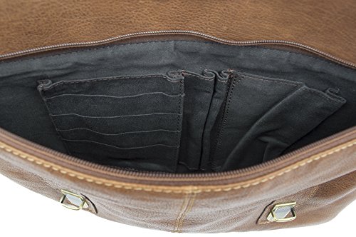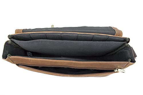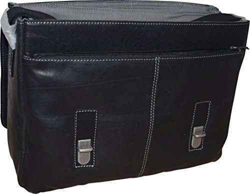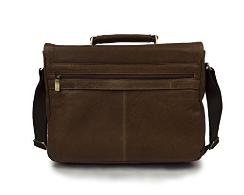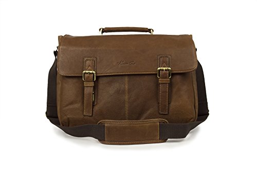-. Brand : Kenneth Cole -. Feature : Full grain cowhide leather / Buckle flap over closure; Top handle; Adjustable padded shoulder strap / Large front zip pocket features 2 open pockets, 2 pen pockets, and 4 card slots; back zip pocket / Interior front compartment is roomy and feature two large open pockets that can accomodate a tablet; padded rear compartment is thinner and can easily accommodate a laptop / 15.5" x 11" x 5" -. ProductGroup : Apparel -. ProductTypeName : LAGE -. Title : Kenneth Cole "Flap-py As Can Be" Full Grain Cowhide Leather Double Gusset Flapover 14.1” or 15” Computer Portfolio