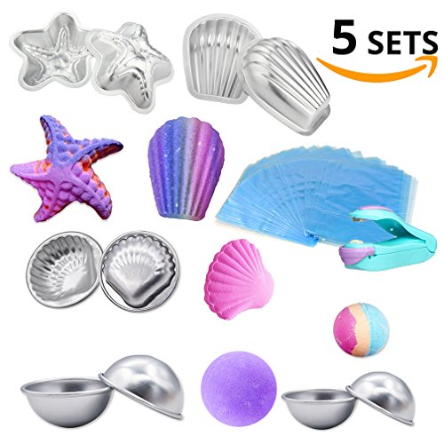 - Package contains 10 pieces metal bath bomb mold (2 shell shape, 2 scallop shape, 2 starfish shape, 4 hemispheres,not included bath bomb), 100 Pieces Shrink Wrap Bags and 1 Pieces Mini Heat Sealer.