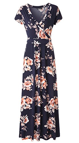 Features: Long summer dresses for women with short sleeve,elegant empire waist and sexy criss-cross v-neck front,easy to nurse in,great nursing maxi dress for mom.Petite maxi dress with A line flowy skirt,would hide your little belly well.Great long dresses for women casual,party,evening,cruise and maternity