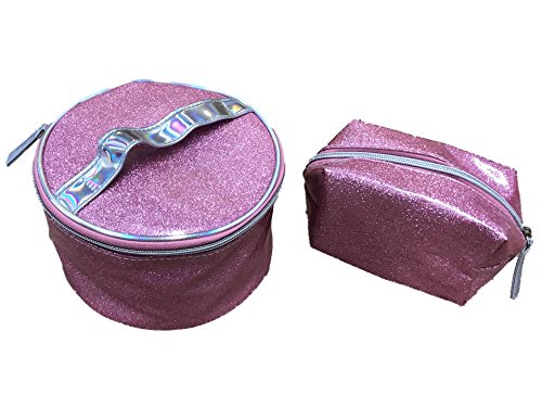 Patent Leather Cosmetic Bag Set Pink Glitter