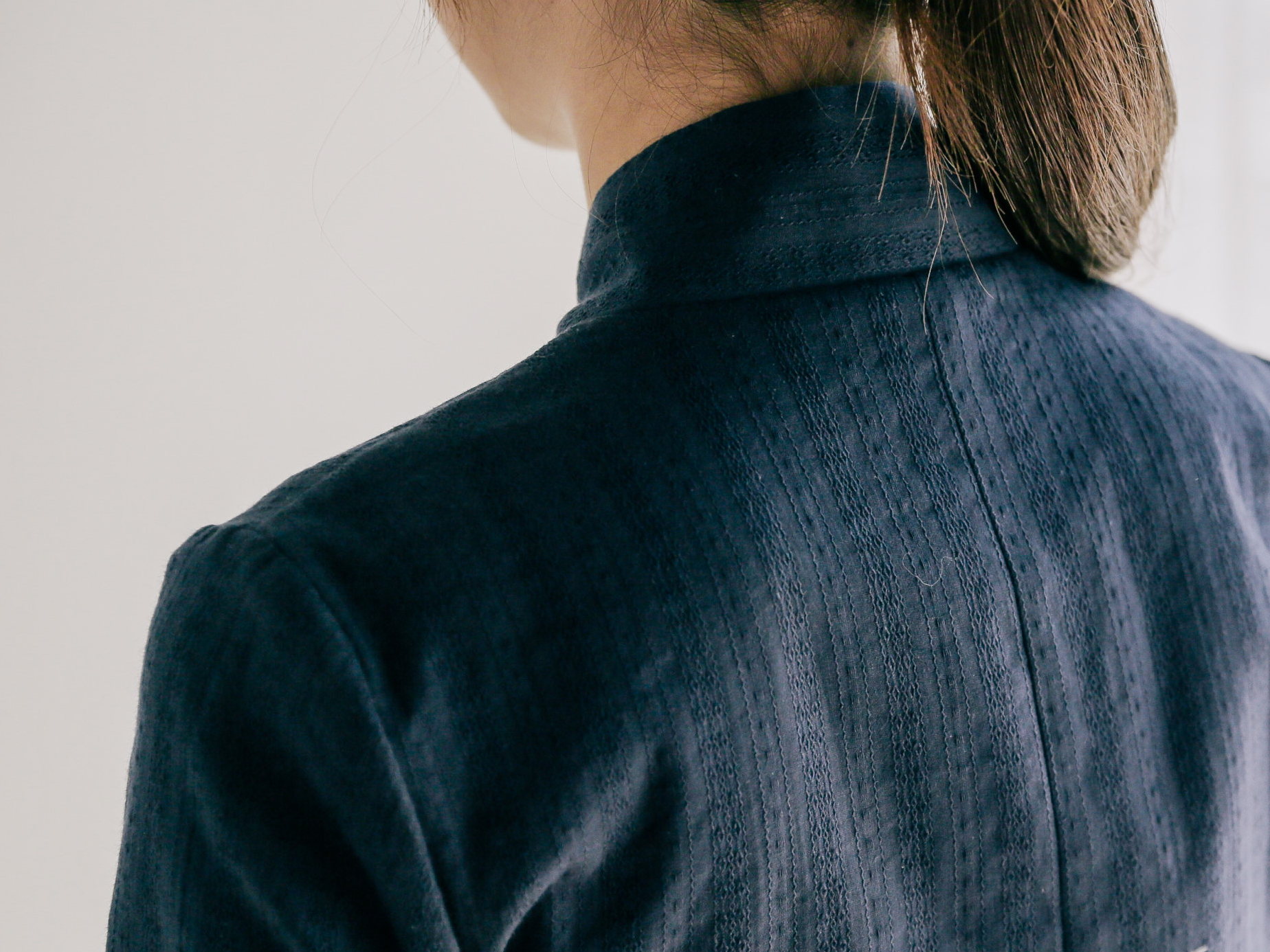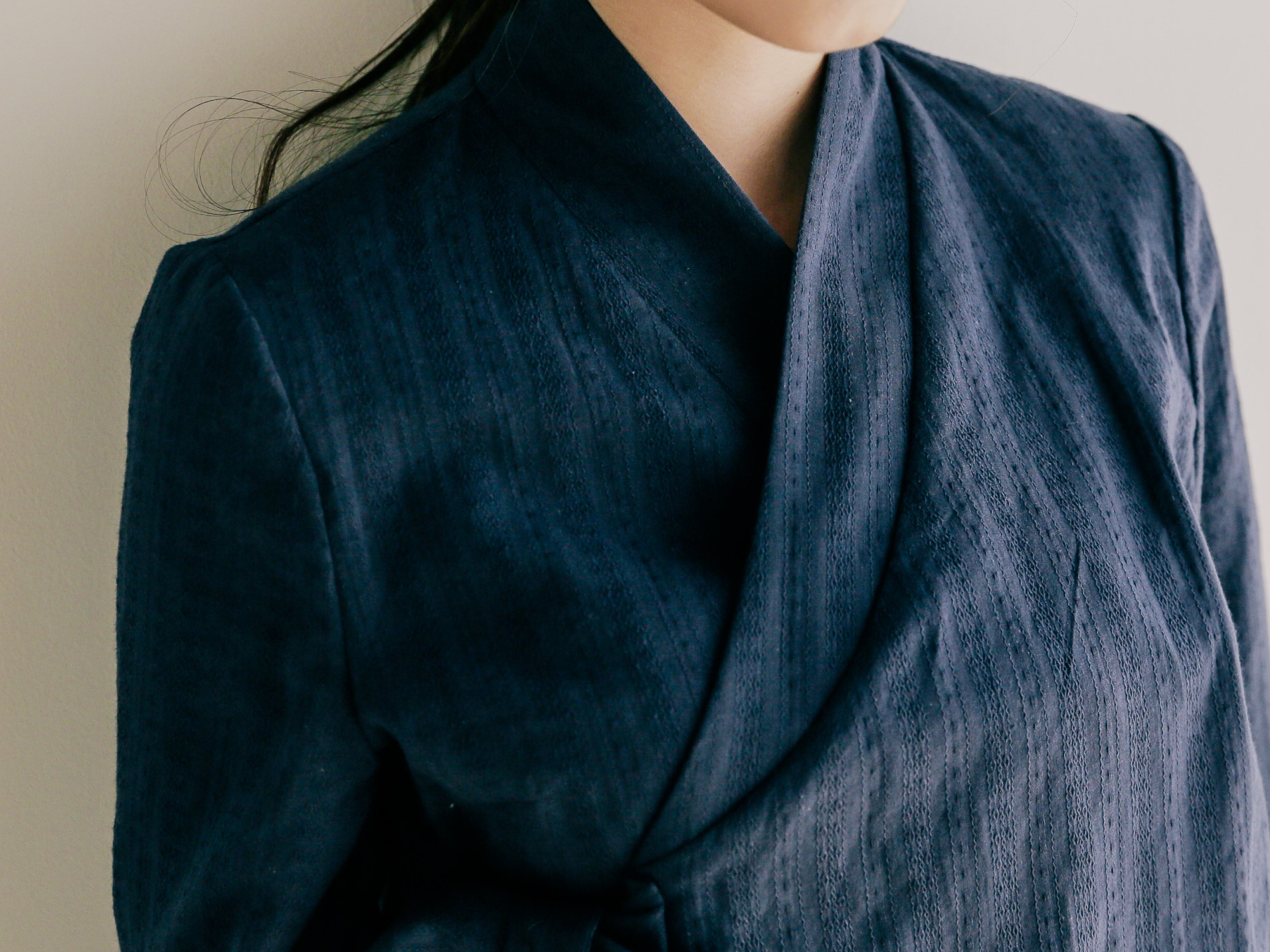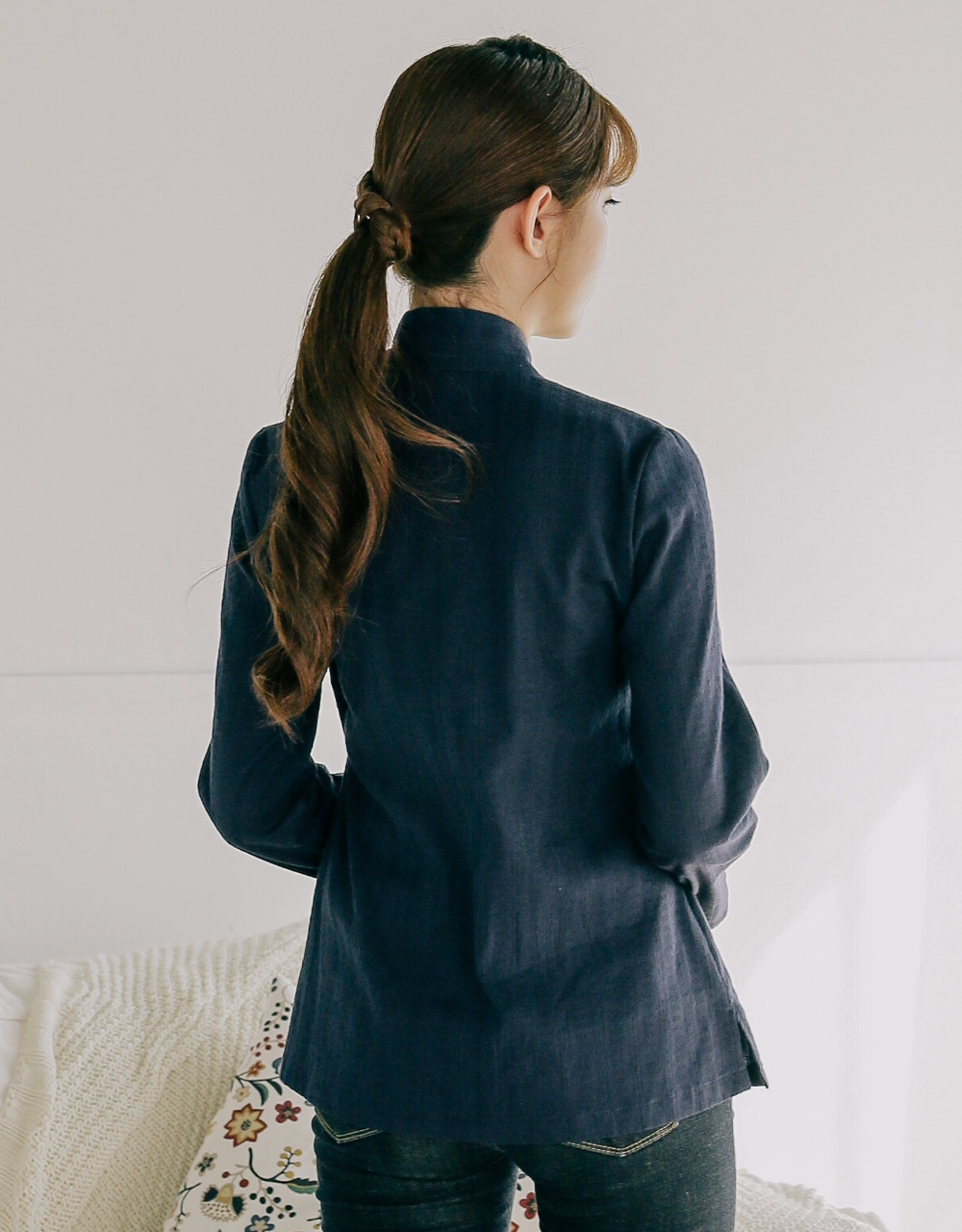 세로 쟈가드문양이 새겨져 있어 체형이 슬림해 보이고, 쟈가드 원단이 주는 톡톡함과 컬러가 주는 단아함은 어느 하의에나 잘 어울려 활용도가 아주 좋은 블라우스 저고리에요.