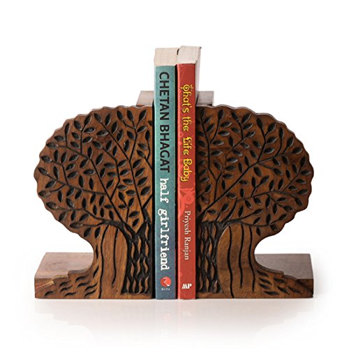 ExclusiveLane Tree Of Life Book End In Sheesham Wood -Book Ends Stand Holder Book Case Table Décor Desk Bookshelf