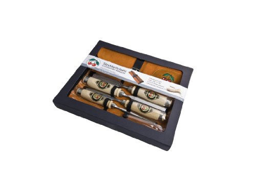 4tlg Stechbeitelsatz-Weißbuchenheft in Ledertasche