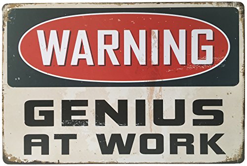Warning Genius At Work Retro Vintage Tin Sign 12" X 8" Inches