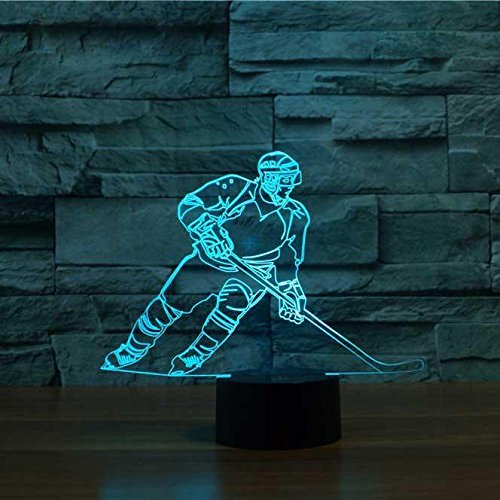 Item Weight:8 ounces Package Dimensions:9.5 x 7.2 x 2.2 inches Color:Hockey Style:Modern Material:ABS&Acrylic Shape:Stick Power Source:AC Voltage:5 volts Wattage:0.3 watts Type of Bulb:LED Switch Style:touch Special Features:cool toys for boys girls, best Christmas gif, 3d night light lamp Batteries Included?:No Batteries Required?:No Shipping Weight:8 ounces (View shipping rates and policies)