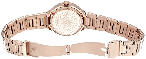 -. Feature : Rose gold-layered watch featuring Swarovski crystal-set bezel, ciruclar Swarovski crystal design on dial, and link bracelet / Swiss quartz movement with analog display / Protective synthetic sapphire crystal dial window / Features fold-over clasp with double safety push-button closure, sword-shape hands, and black logo on dial / Water-resistant to 50 m (165 ft)