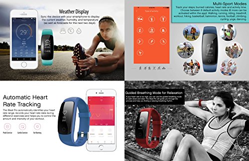 0.91"-Touchscreen: Uber den LED-Bildschirm erhalten Sie Push-Benachrichtigungen, Daten zu Ihren Aktivitaten und Ihrem Puls, Wetterberichte, Statusmeldungen und weiteres. Textnachrichten konnen direkt am Fitnesstracker gelesen werden