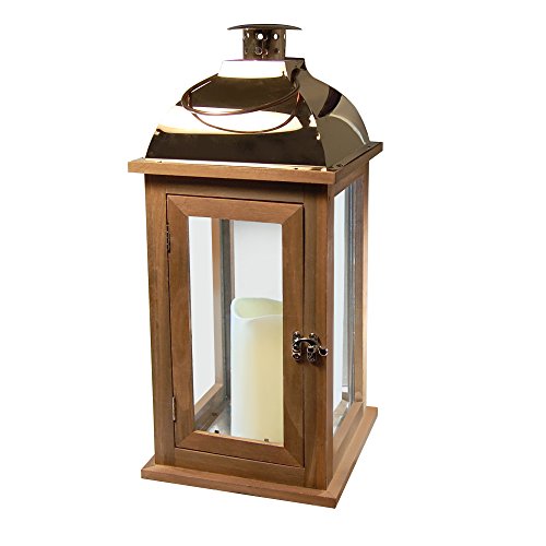 -. Title : LumaBase 95301 Wooden Lantern with LED Candle, Brown/Copper