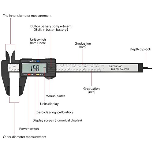 √EASY TO READ:Large-screen LCD display design is easy and clear to reading. √PREVENT SCRATCHES:This digital caliper is made of plastic carbon fiber composite material, basically does not scratch the surface of the object, you can not care about the problem of scratches
