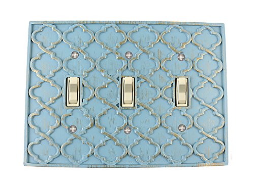Meriville Moroccan 3 Toggle Wallplate, Triple Switch Electrical Cover Plate, Cameo Blue with Gold