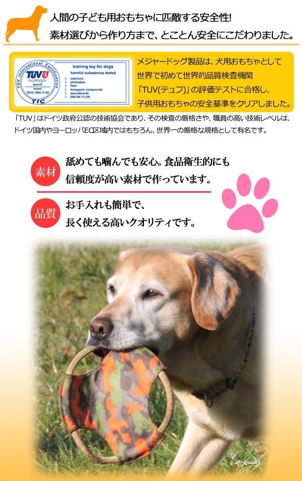 | 素材は耐久性が高く、ワンちゃんが噛んでも安心・安全なものを使用しています。ワンちゃんが長く楽しめるよう様々な工夫がなされているおもちゃです♪そのクオリティの高さは、ドッグトレーナーも愛用している程です! |