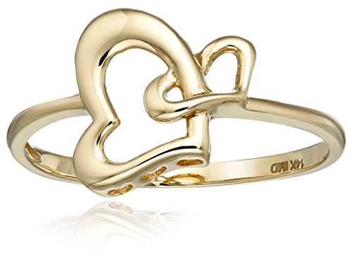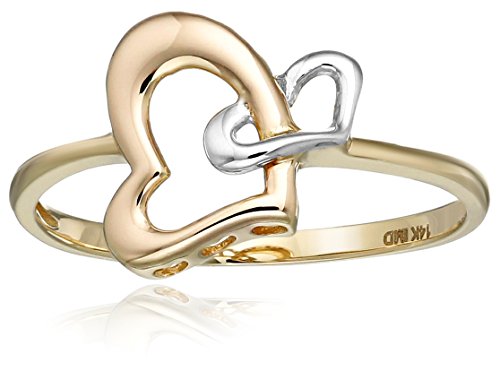 Linking open-heart shapes create a fashionable finish atop this 14k gold ring design. Choose from polished yellow or an eye-catching tri-color gold finish.