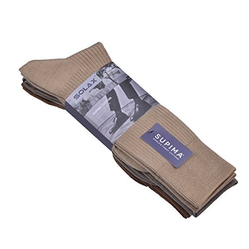 -. Binding : Apparel -. Brand : SOLAX -. Color : Asst8 -. Department : mens -. EAN : 0761290360068 -. Feature : ★ QUALITY AND COMFORT PERFECTLY COMBINED - Forget about socks that are tight and uncomfortable. Say goodbye to socks that fall apart in no time! This makes them soft, durable, breathable and comfortable at the same time! Nothing less than you deserve. / ★ DESIGNED TO BE COMPRESSED & FOR ELASTICITY - Socks are designed to feature a med-compressed & elasticity to gently support and protect an Arch, Ankle, Heels and Stay up, Compressed Top Holds the sock securely on the calf. / ★ SOFT SOCKS - The process of production imparts these black athletic or dress socks high durability, improves their lustre and results in sheen appearance, improves socks resistance to mildew and increases their affinity to lint. This ensures that you get extremely good quality socks that not only look great but are excessively soft and comfortable / ★ SIZE & CARE - These socks come in a standard US SIZE that fit shoe sizes from 9-12.5. so everyone can enjoy these premium high quality socks. Please do not iron them. We also recommend gentle hand wash with cold water and no tumble dry, for these socks may shrink at high temperature. Great quality socks require the proper care! / ★ GREAT QUALITY - Carefully designed for long lasting superior quality, won't fade or misshape wash after wash. -. IsAdultProduct : 0 -. Model : solax-11-L -. PackageQuantity : 1 -. ProductGroup : Apparel -. ProductTypeName : SOCKSHOSIERY -. Size : Large -. Title : SOLAX Men's Supima Cotton Dress Socks Rib Knitting Sock 3 Pack Shoe Size 9-12.5 (ASST8) -. UPC : 761290360068