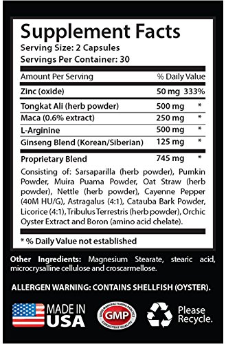 -. Feature : UNLEASH YOUR WOLF: This is unique formula can be beneficial for supporting sexual drive and libido, fertility and sexual stamina, sexual performance and activity. Also it can help with boosting muscle growth and recovery. UNLEASH YOUR WOLF includes many powerful herbs such us: Tongkat Ali, Zinx, Maca, Korean Ginseng and Siberian Ginseng, Sarsaparilla, Pumpkin seed, Muira Puama, Oat Straw, Nettle, Cayenne Pepper, Astragalus, Catauba Bark, Tribulus Terrestris, Orchic, Oyster Extract and Boron. / TRIBULUS TERRESTRIS FOR SEX: Low sex drive is one of the many issues both men and women experience in bed. A 2012 study showed that the fruits of Tribulus terrestris work as an aphrodisiac and can be helpful for low libido and sexual drive. / ZINC SUPPLEMENT FOR MEN TESTOSTERONE: The role of zinc in sexual health and libido is partly related to the impact of the mineral on testosterone. That is, the boost in T levels associated with zinc supplementation can be beneficial for enhancing sexual health and sex drive. / MUIRA PUAMA HERBAL SUPPLEMENTS: Traditionally Muira Puama has been used by indigenous Brazilian tribes for supporting nervous system, bone health, muscles and support sexual drive. This herb is best known for its aphrodisiac qualities. Some of the other common names of this herb are "erection root" and "sex wood". You can see how these common names have come to give this plant a great reputation as a male sexual enhancer. / OUR GUARANTEE: PREMIUM QUALITY SUPPLEMENT PROUDLY MANUFACTURED IN THE USA! We use only the very best ingredients, all of which are manufactured in state-of-the-art facilities, with strict adherence to good manufacturing practices (GMP).