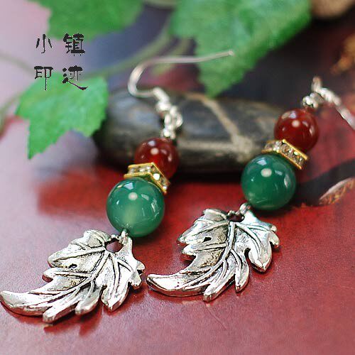 Specifications: Body length of about 6cm (excluding ear hook), Tibetan silver leaf diameter of about 2cm, green bead diameter of about 1cm