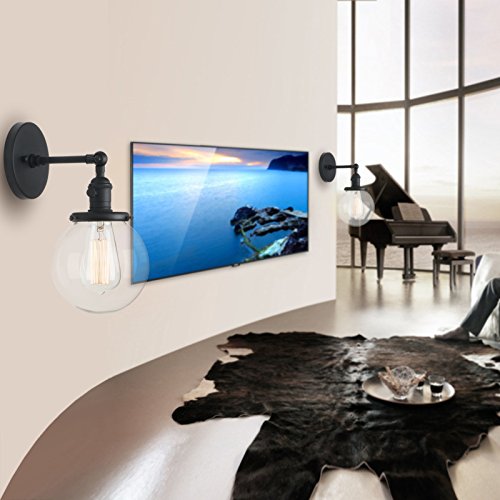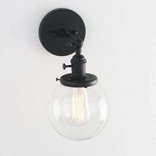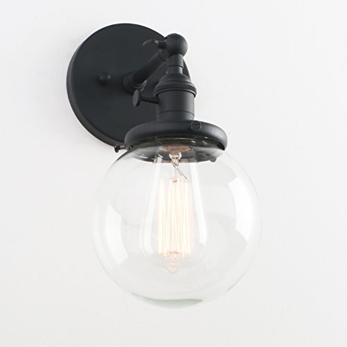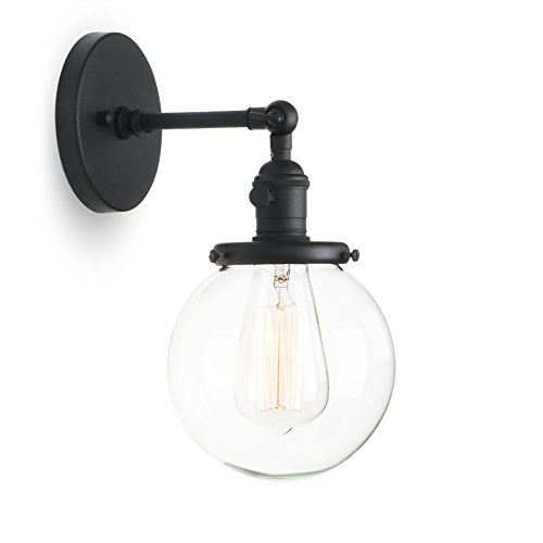 Phansthy Retro Industrial Sconce Light Globe Glass Industrial Wall Light Fixture with 5.9” Round Clear Glass Canopy for Loft, Kitchen, Dining Room Decoration and Lighting