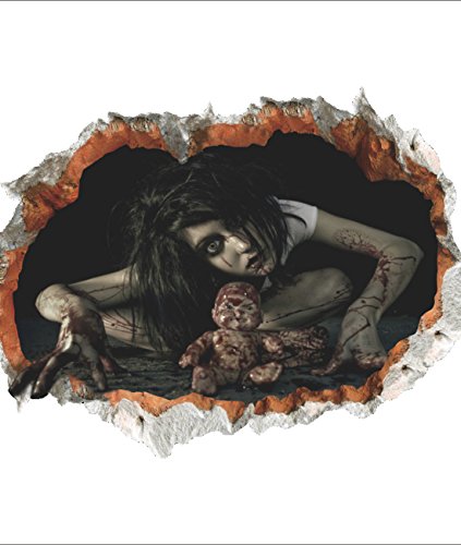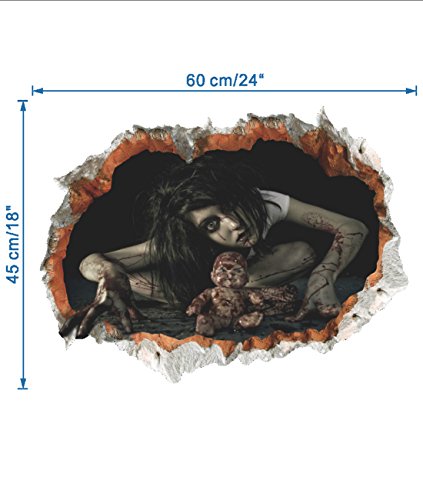 3D Female Ghost Breaking Wall Halloween Decoration 24"×18“ Removable Home Decal Vinyl Wall Sticker Art Decor (Style 1)