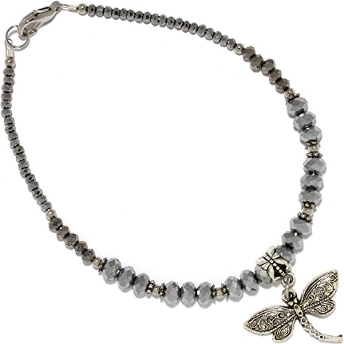 -. Title : AnsonsImages 9.5" Inches Anklet Bracelet Dragonfly Crystal Cut Beads Gray Silver