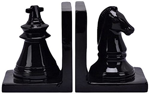 Benzara Playful Ceramic Chess Bookends (Set of 2), Black