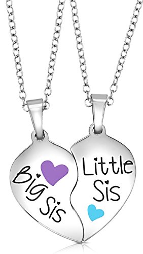 Set of TWO heart halves that fit together to form one heart - Purple for big sister and aqua blue for little sister