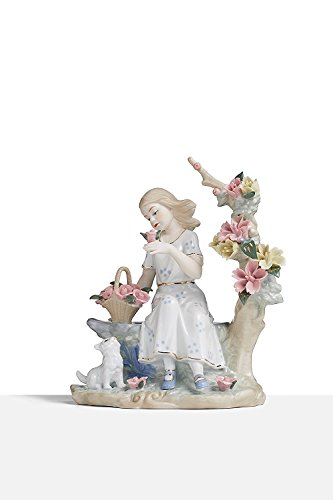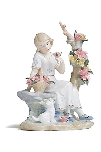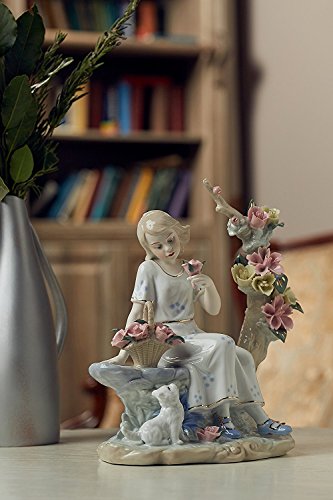 - The porcelain figure portrays a pretty girl sitting on the garden bench with her cat, amid blossoming flowers. The statuette will make a perfect gift for your friends, family or yourself and a treasured addition to porcelain art collection.