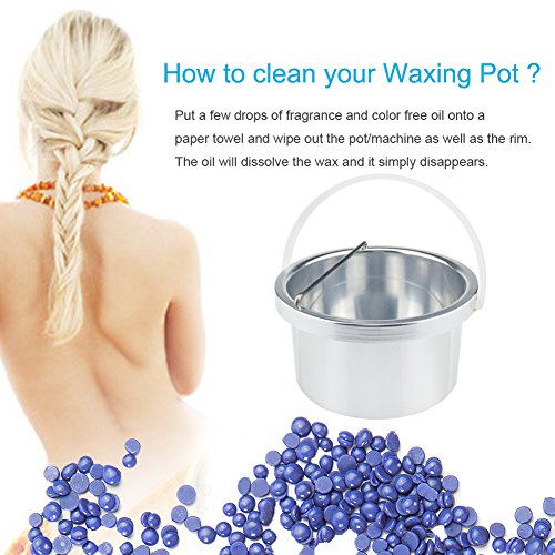 Tips: How to clean your waxing pot? 1.Pour some of cleaner, such as oil, into the wax container and allow some of the wax to be dissolved away. 2.Use a scraper or spatula to remove stubborn bits of wax. 3.Once all the wax is dissolved away, use paper towel to wipe out the inside of the wax warmer to get rid of any residue.