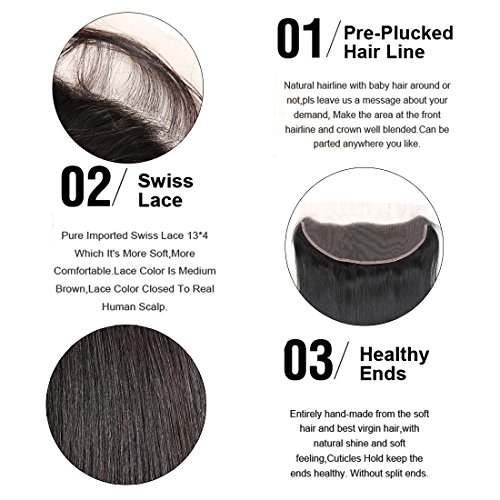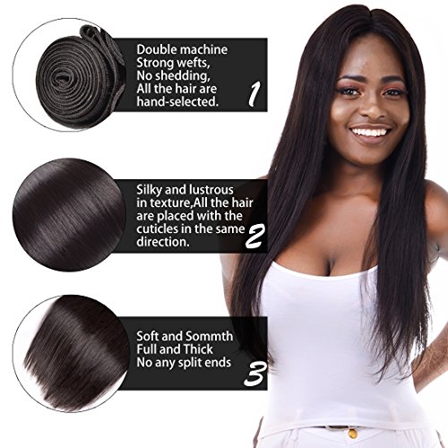 About Hair Weaves -- Hair Material:7A grade 100% Virgin Brazilian Hair -- Brazilian Virgin human hair weave bundles -- Hair Weight:98-100g per bundle. -- Hair Color:natural black color,can be dyed and permed. -- Double weft,very clean,natural,soft,comb easily. -- Tangle-Free, NO Shedding,Healthy and Thick -- Texture:Silky Straight Virgin Hair About Lace Frontal Closure -- Lace Size:13x4 inch lace frontal closure -- Lace Color:Medium Brown color -- Lace material:Swiss lace ,Strong and Invisible -- Density: 130% density -- Hair Parting: Free part. -- Hair Color:natural black color? -- Hair Weight:55g-80g/pcs,Full and Thick? state.Just buy without any worries! FAQ Q:How many bundles do I need for a Full Head Installation? A:Below is our suggestion for your reference pls note one bundle is 100g; If your head size is bigger than standard pls take more than 3pcs hair wefts.? Q:How to measure the hair? A:For the wave hair when measure the hair it should be stretched. Q:How do I wash my hair extensions? A:Wash the hair in one direction. From top to the end do not wash your hair upside down. And use some moisturizing shampoos and conditioners would be? better. 0 |
