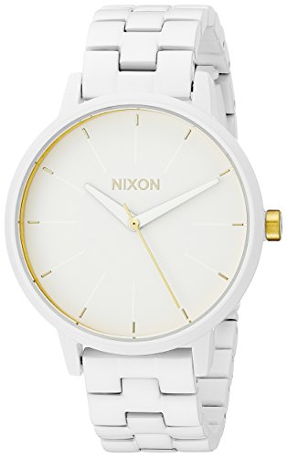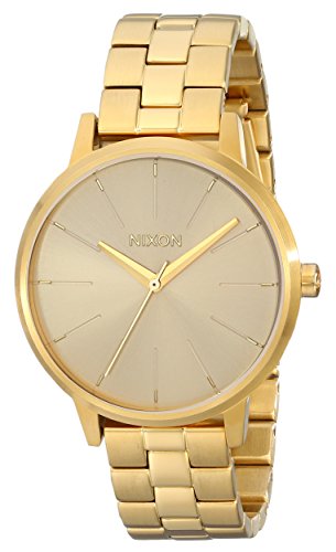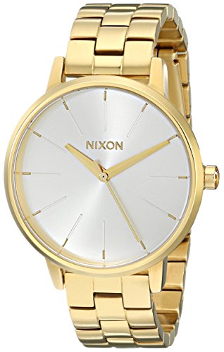 A classic, versatile Nixon watch. Slim markers detail the round dial. Gold-tone link band. Hinge-snap clasp.