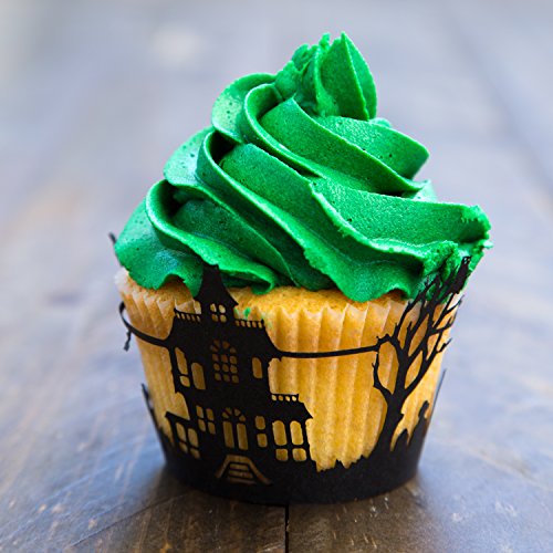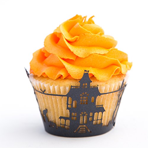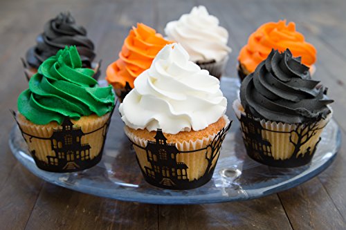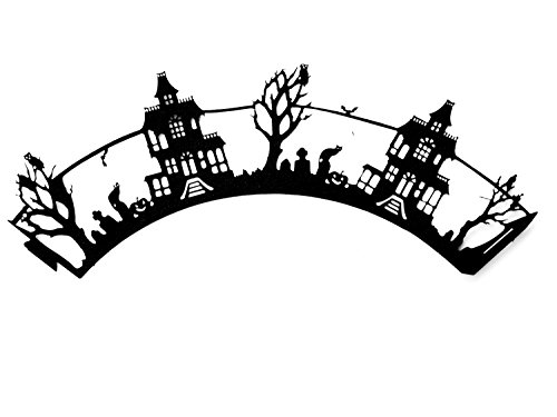 Cupcake Wrappers Haunted House x50pcs. 3 scary wraps to choose in shimmering black (Scary Houses)