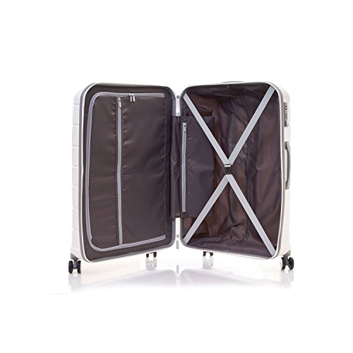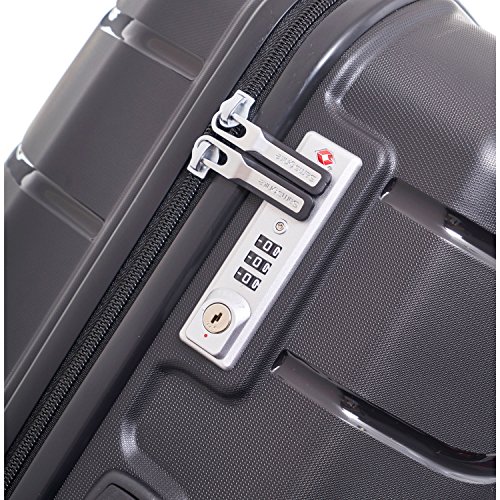 -. Feature : Cross ribbon and divider for easy packing, multi-pockets for managing belongings during travel / Double wheels design to increase maneuverability / Dimensions: 27.6 x 20 x 13, Weight: 9.59 LB / TSA 3-dial combination recessed lock. Buit-in ID tag / Recessed metal logo plate enhances its ultra-modern feature