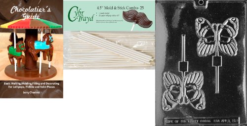 Cybrtrayd 45St25Bk-A088 'Butterfly Lolly' Animal Chocolate Candy Mold with 25 4.5-Inch Lollipop Sticks and Chocolatier's Guide