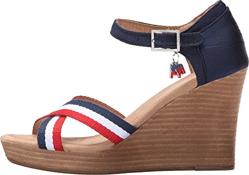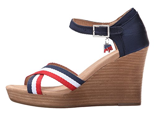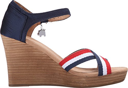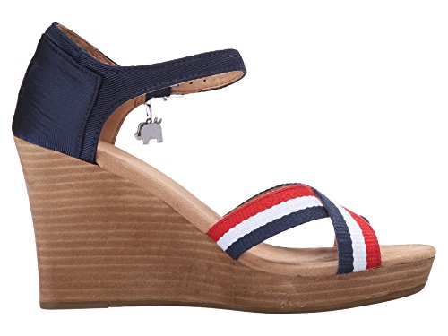 Binding : Apparel Product Description Textile upper with a navy grosgrain contrast heel and striped criss-cross stripes at vamp. Removable donkey and elephant charms on both shoes. Ankle strap with side buckle for a secure and adjustable fit. Soft textile lining offers a comfortable next-to-skin feel. Cushioned comfort insole with antimicrobial sock liner. Wood stacked wedge. Durable rubber outsole with excellent traction. Imported. 0