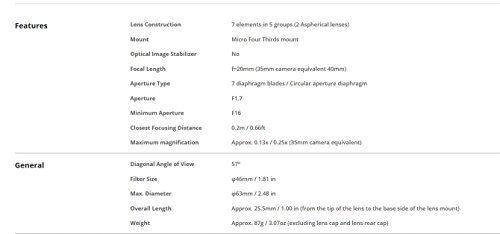 PANASONIC LUMIX G II LENS, 20MM, F1.7 ASPH., MIRRORLESS MICRO FOUR THIRDS, H-H020AK (USA BLACK)