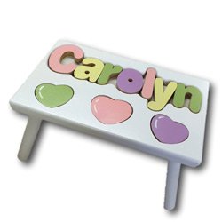 Studio : Ababy Publisher : Ababy Binding : Toy Product Description Learning is Fun! This adorable step stool is a great gift idea for your child. Sturdy, useful and super fun for kids to play with over and over again. The puzzled letters of their name and cute heart symbols create an excitement for letter recognition and hand eye coordination. Choose the finish and letter color you like, and we'll create a wonderful item your child will love. 0