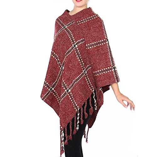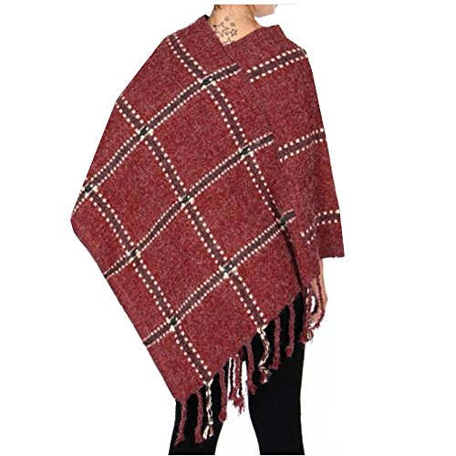 Product DescriptionThis knit poncho in diamond pattern will provide the comfort and style you need for the cold month of fall. The stylish poncho features tassels. It comes in burgundy with square contrast pattern.0