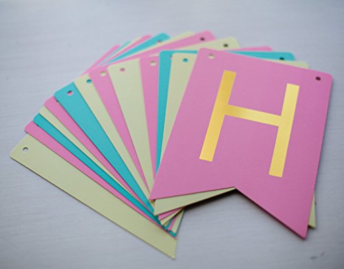 13 Pennants with single letters that spell the phrase "HAPPY BIRTHDAY"