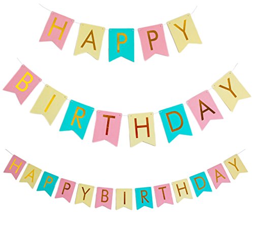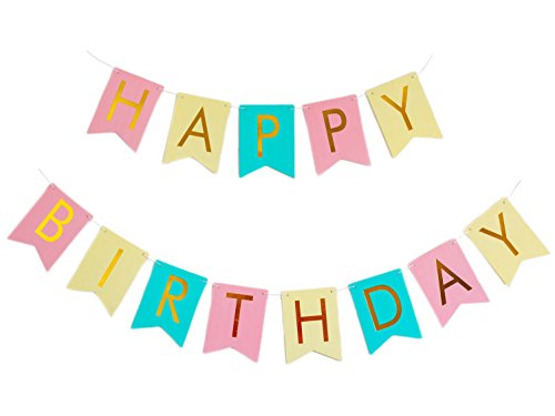 Happy Birthday Banner - Mixed Color with Gold Foil Letters - Party Decoration Supplies with Colorful Sign by Kristin Paradise