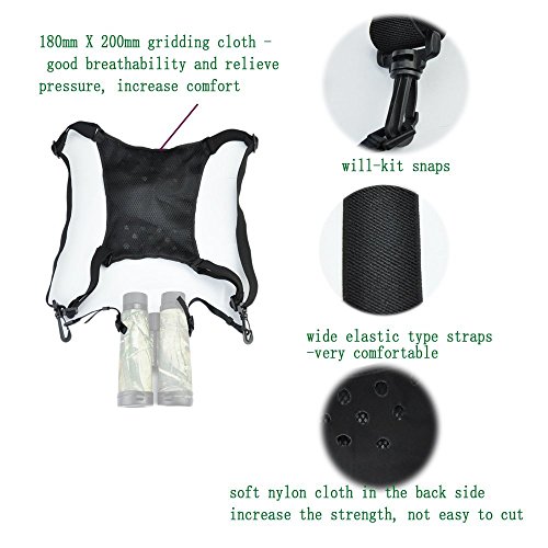 Comfortably holds Binocular SLR DSLR Cameras against the users body.