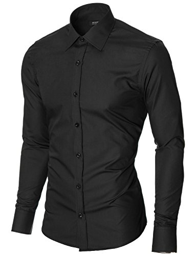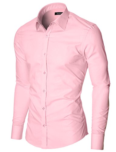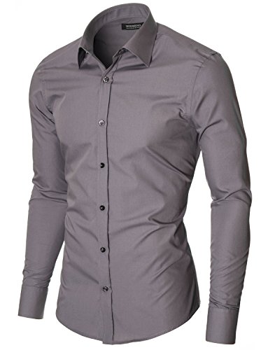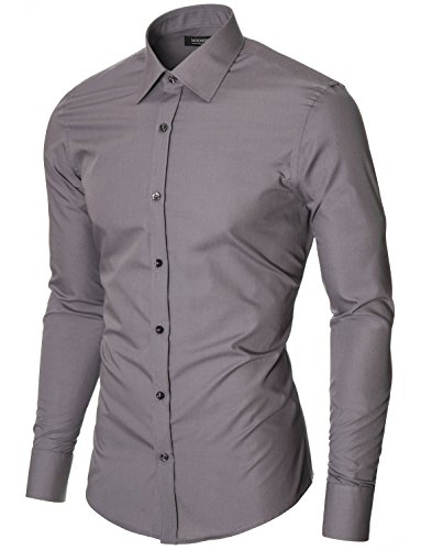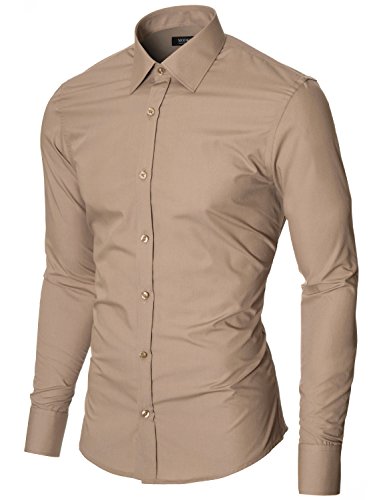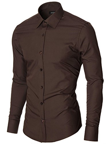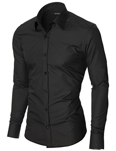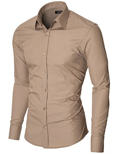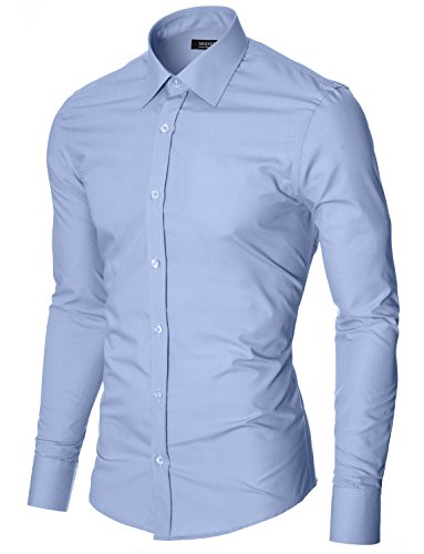 Das Baumwollmischung Gewebe macht dieses Slim Fit Hemden fur Manner bequem, wenn Sie tragen; Leicht zu bugeln; Trockenreinigung, Waschmaschine oder Kaltwasser Handwasche werden empfohlen