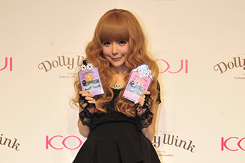 身为2009年日本最红的女艺人之一:益若つばさ。她独特的成熟甜美娃娃风格席卷了整个日本年轻一代的女性。Dolly Wink是她亲手操刀设计的一个以假睫毛为主的品牌。一上市,就成为各药妆店的宠儿。