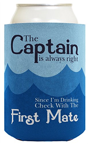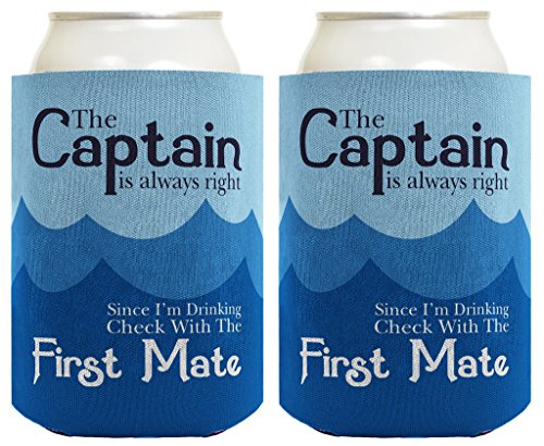 Funny Beer Coolie Captain Always Right Check First Mate Nautical Sailing Boating Gag Gift 2 Pack Can Coolie Drink Coolers Coolies Blue