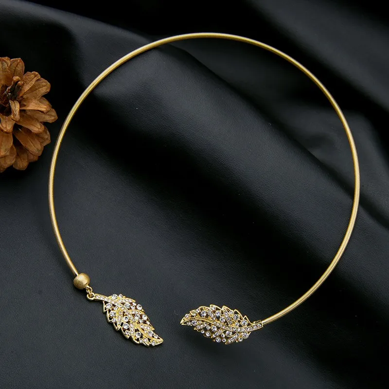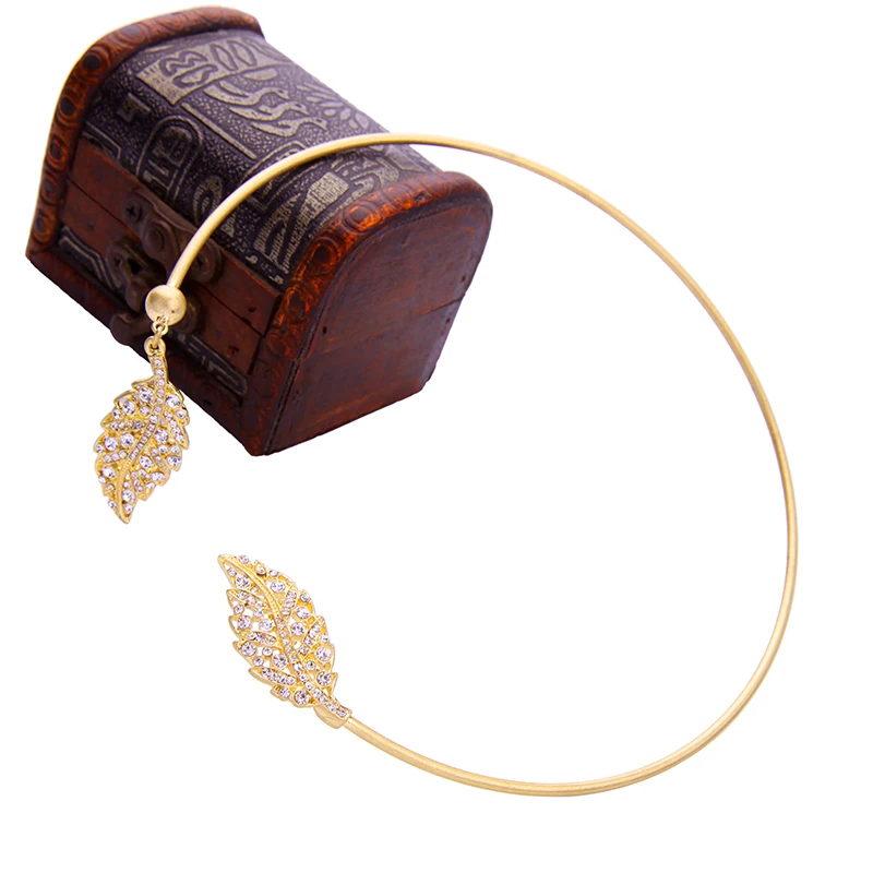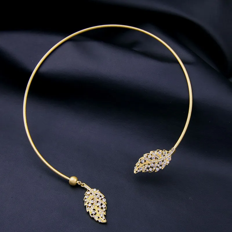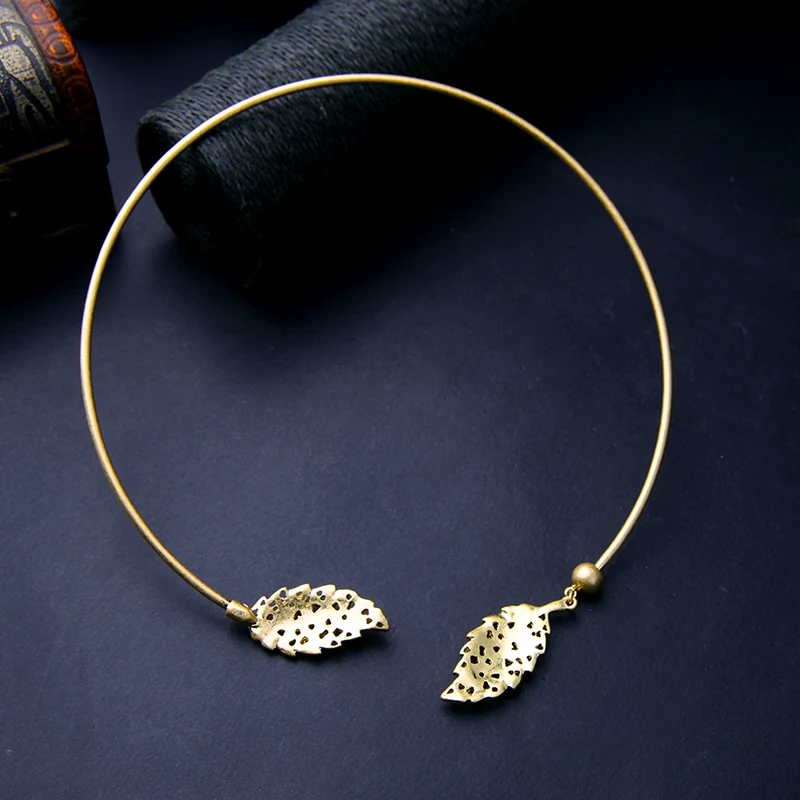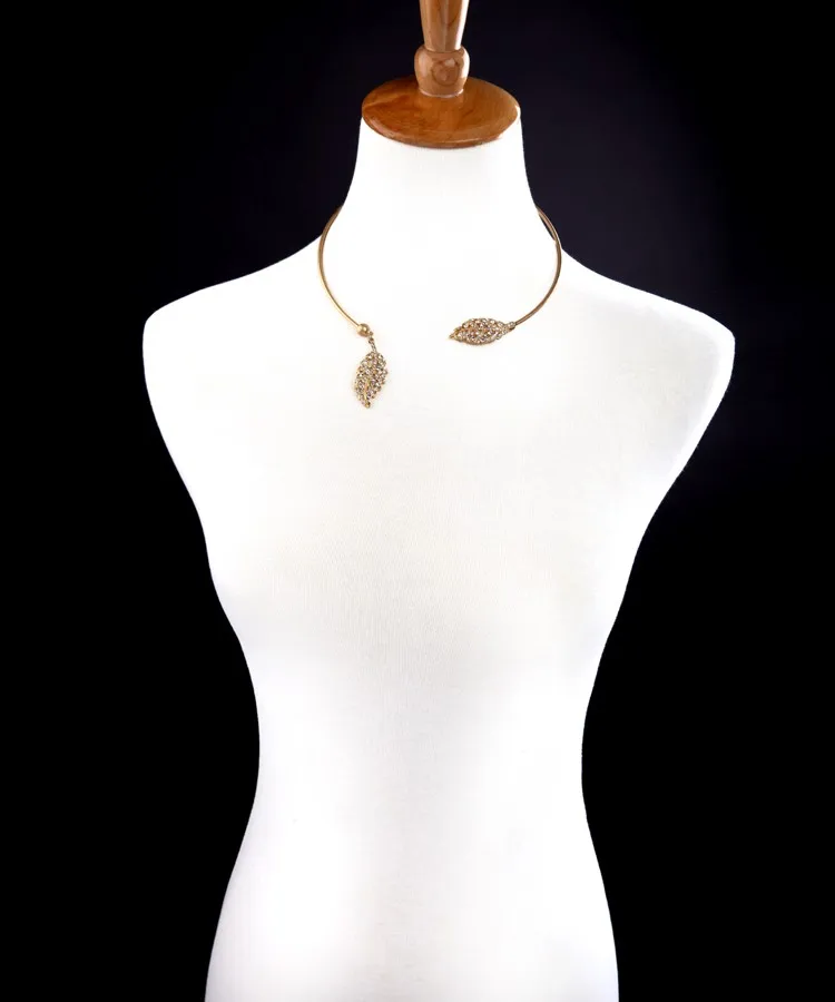 Products name:Chic Copper Crystal Leaf Torque Necklace