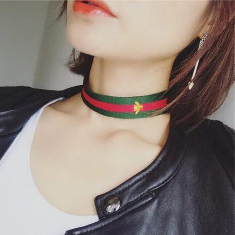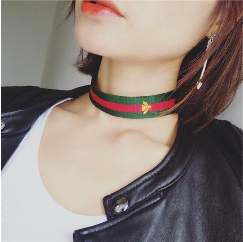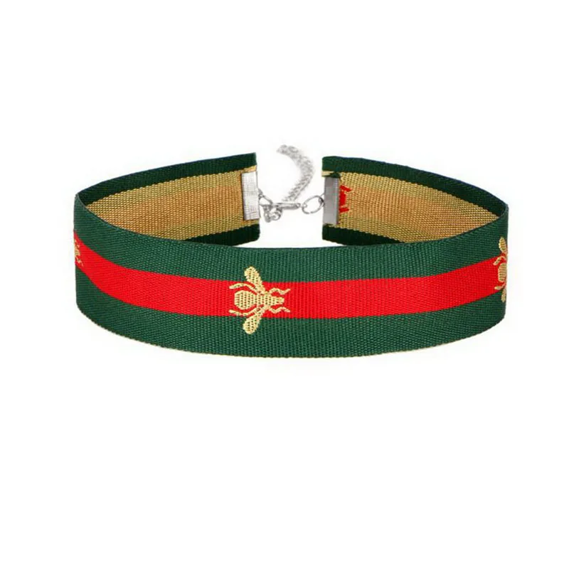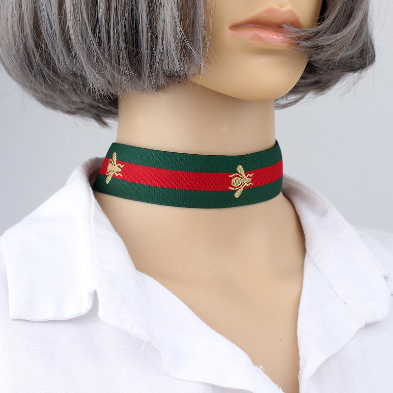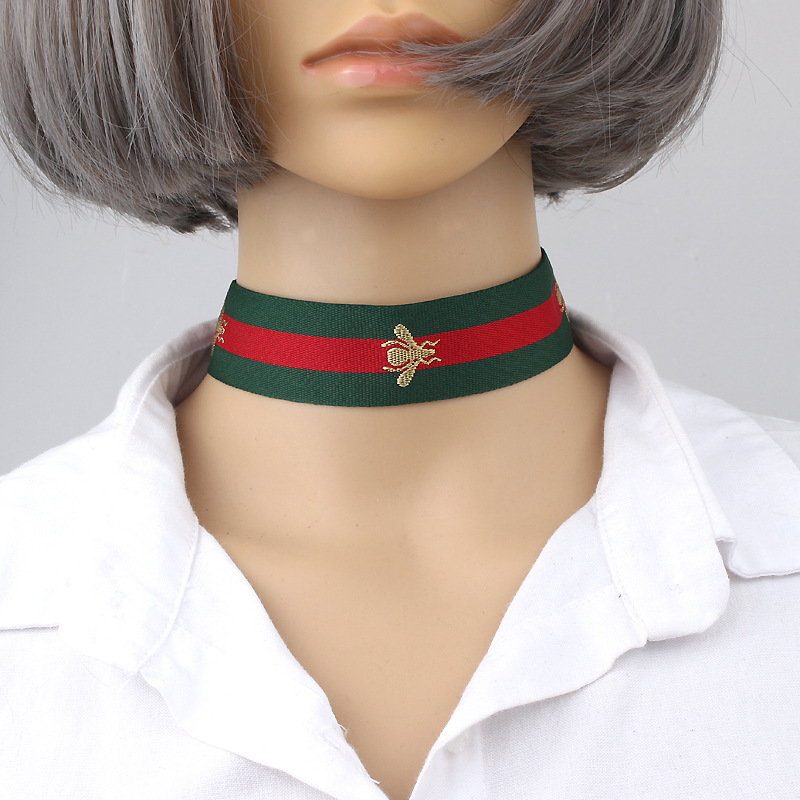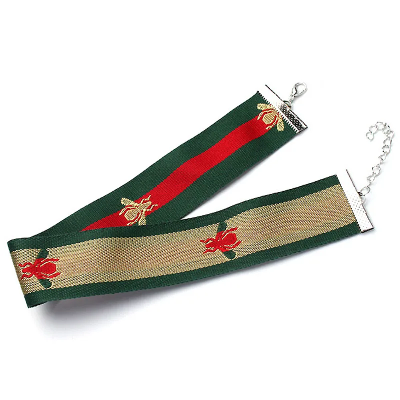 Type:Red Green Stripe Ribbon Choker Necklace