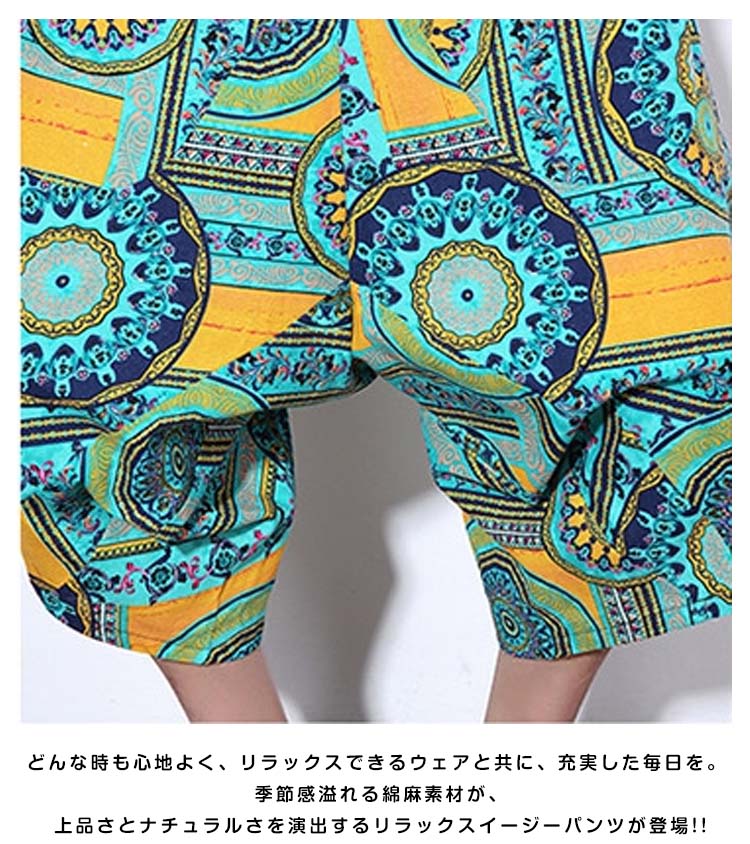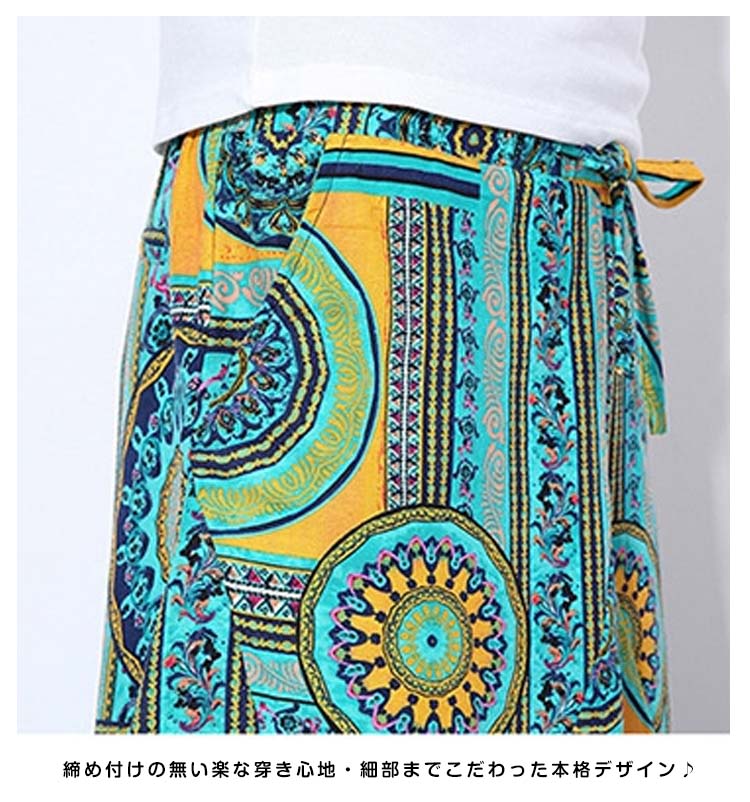 | 全力でアジアンムードを楽しめるカラフルなワイドパンツ!ボディラインを拾わないワイドシルエットのデザインが今年らしいスタイルに仕上げます。下半身をすっぽり包み込み、気になる部分の体型カバーにも役立ちそう。アジアンムード満点でシンプルなトップスに合わせるだけでOKですよっ♪ | |
