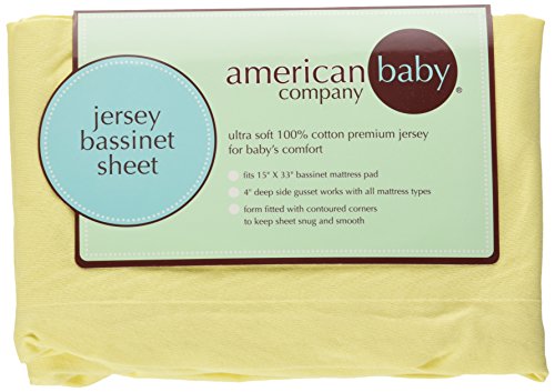 ReleaseDate : 2007-02-28 Studio : American Baby Company Publisher : American Baby Company Binding : Baby Product Product Description This 100% cotton supreme jersey knit fitted bassinet sheet provides longer lasting wear and softens with each washing. Fits standard size 15" X 33" bassinet pads. Super soft and c ounce y for baby's comfort are machine washable. A rainbow of soft colors to match any nursery decor. 0