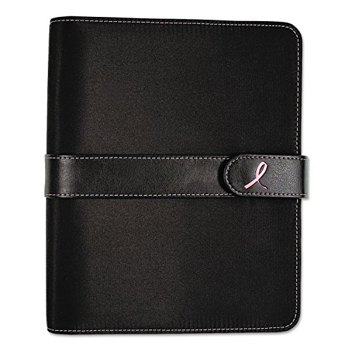 -. Feature : Get organized and support breast cancer research; $1.00 from this purchase will be donated to The Breast Cancer Research Foundation / 12 months of undated two-pages-per-week planning pages; 7 rings; 1-inch ring capacity; Size 4 / 12 tabbed monthly dividers, tabbed telephone and address / Credit and business card holder, 24-sheet lined note pad, zip pouch, and page locator / Black microfiber cover with snap-tab closure and pink ribbon design